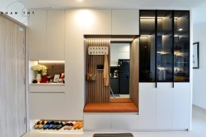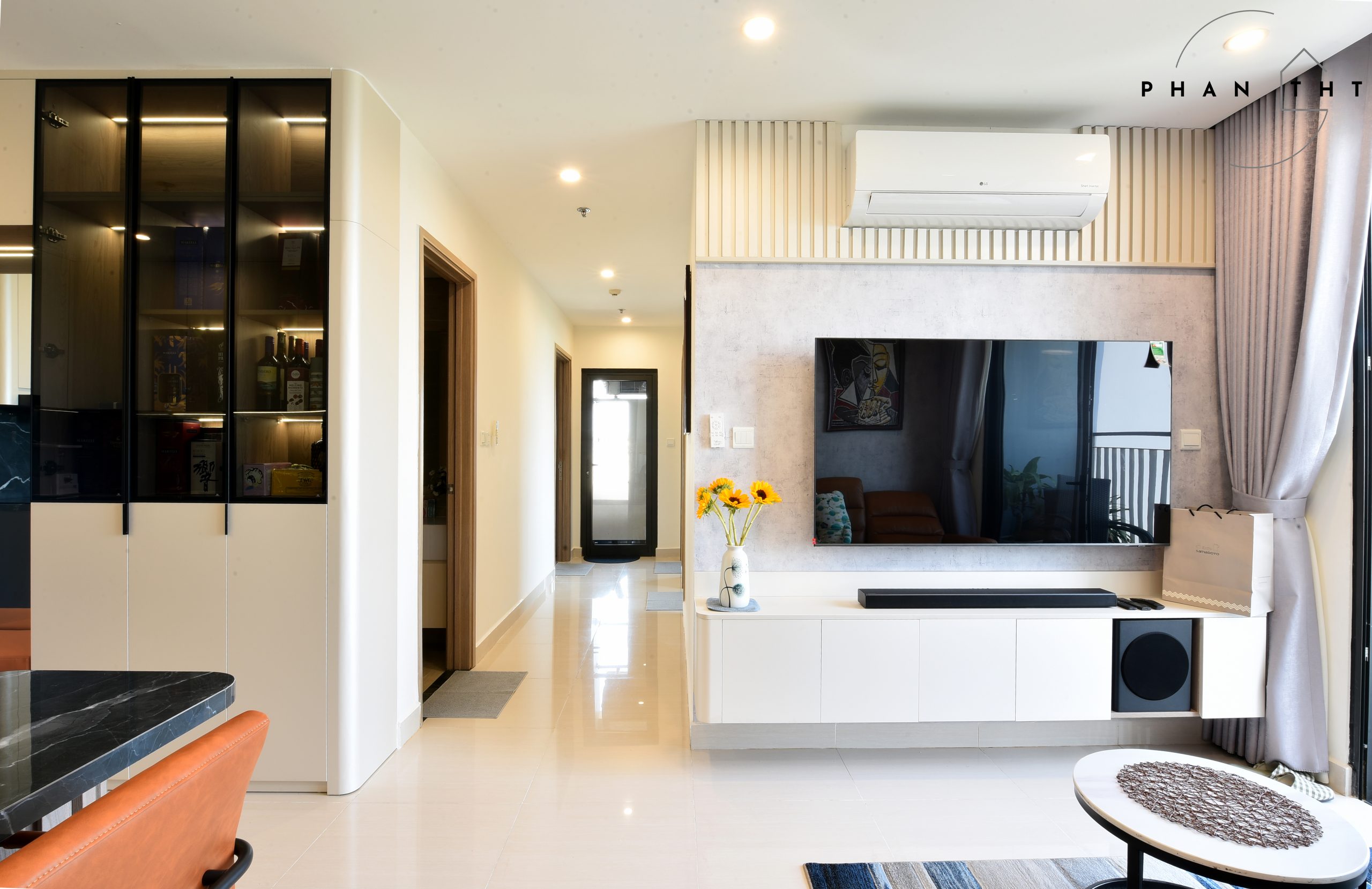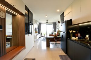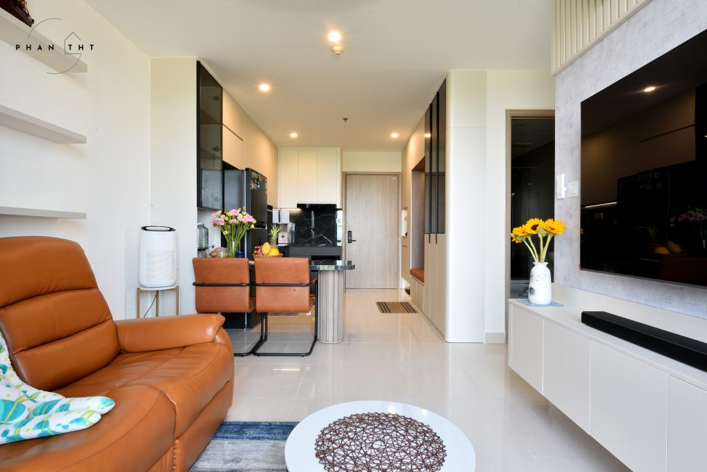 Hình chụp thực tế bàn giao nội thất căn hộ 3PN2WC Vinhomes Grand Park – TP. Thủ Đức. Thiết kế với tone màu nhẹ nhàng, cân bằng giữa phong cách hiện đại và tiện nghi mang lại cảm giác vừa sang trọng vừa gần gũi cho gia chủ.